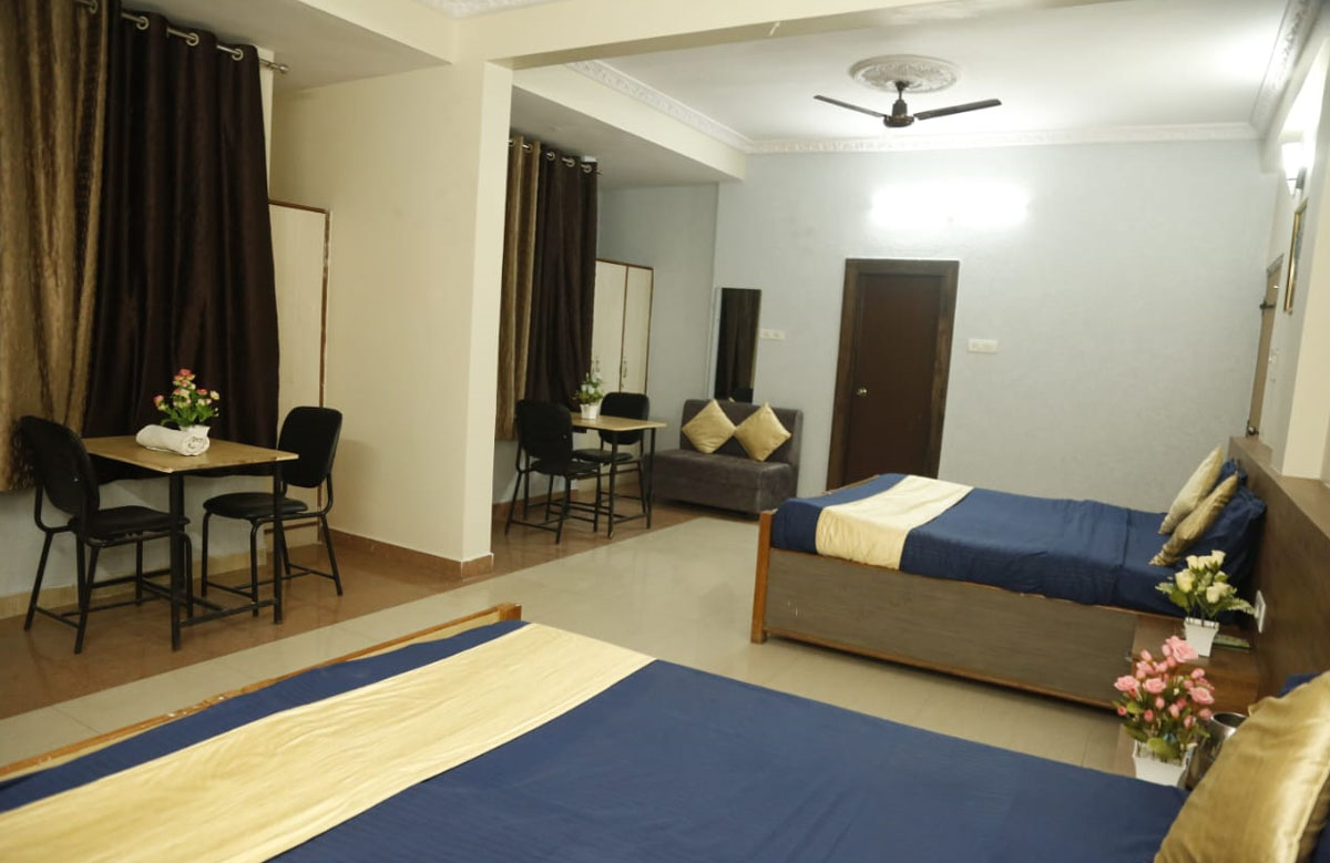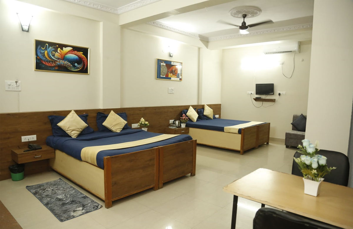 The Deluxe Family Room at Hotel Sandalwood Vibes in Bhopal offers several facilities to ensure a comfortable stay. These rooms are air-conditioned and come with free WiFi, a TV, and daily housekeeping services. Guests also benefit from free parking and access to room service. The hotel provides a shared lounge area for relaxation, and a continental breakfast is available. For added convenience, the property features an elevator and ensures safety with CCTV in common areas and fire extinguishers